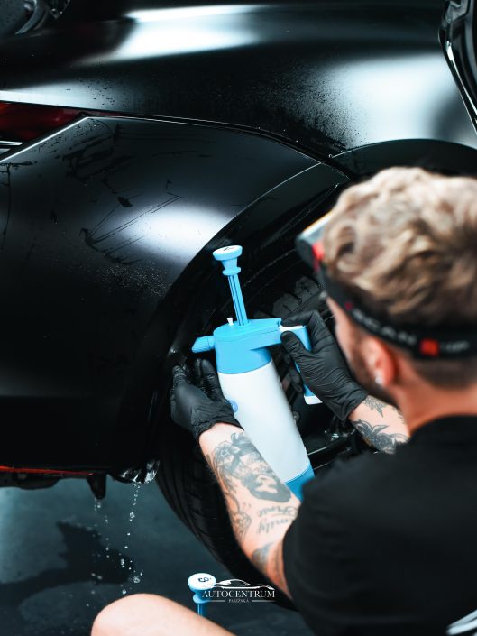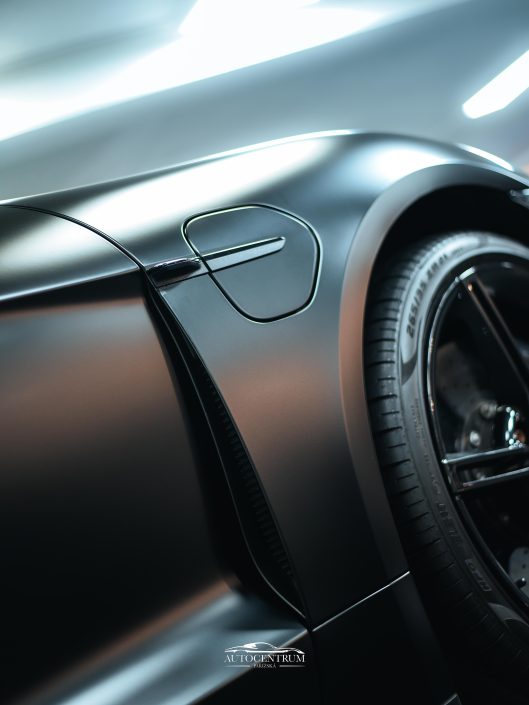 Žádné kompromisy – precizní aplikace, čisté linie, nulové bubliny. Tahle úprava mění charakter auta z elegantního EV na temného predátora silnic.