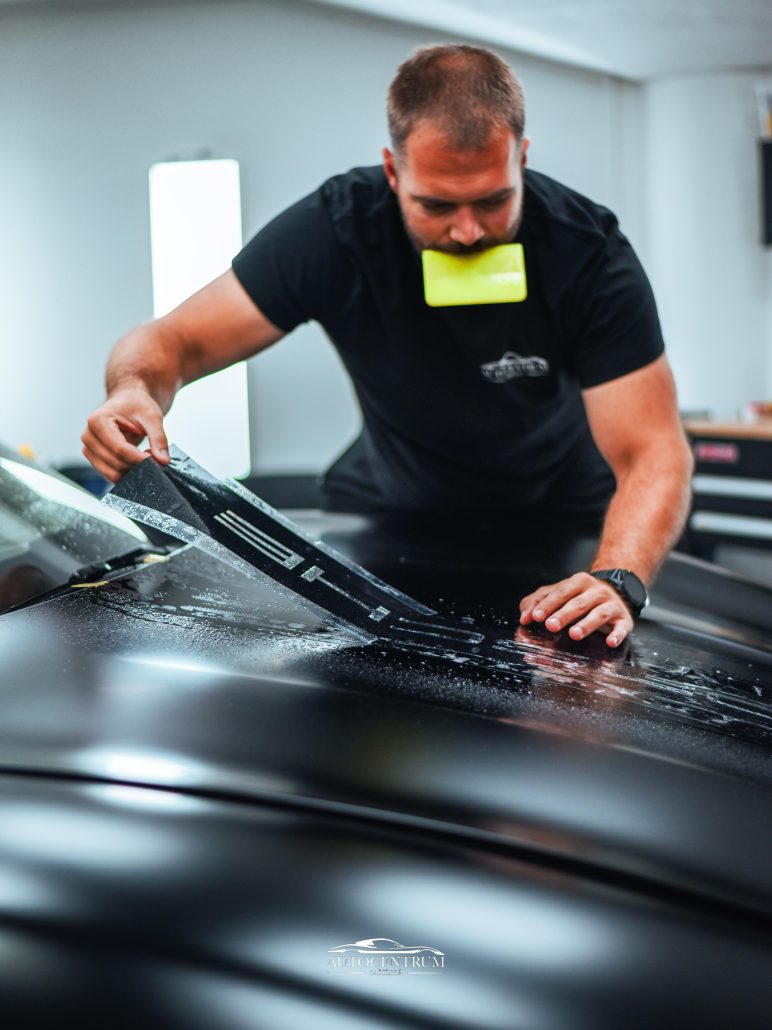 Původní lesklý lak? Ten jsme schovali pod ochrannou fólii s dokonalým matným efektem, která vozu dává drsnější, agresivnější výraz a zároveň chrání každý milimetr karoserie.