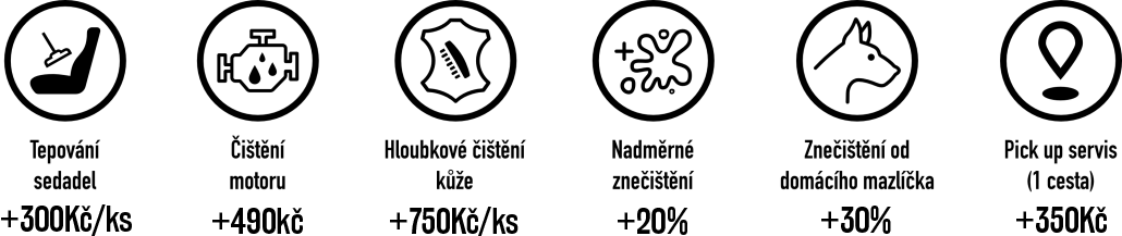 Čištění interiéru dělíme na dvě varianty. První variantou je suchá cesta, kdy vyčistíme mezidveřní prostory, vůz vyluxujeme, celý interiér zbavíme prachu a vyleštíme okna. Druhou variantou je mokrá cesta, kdy se navíc tepují sedačky, abychom je zbavili skvrn a zápachu. Stejnou péči pak věnujeme i ostatním textilním částem interiéru jako jsou výplně dveří, loketní opěrka a koberečky.