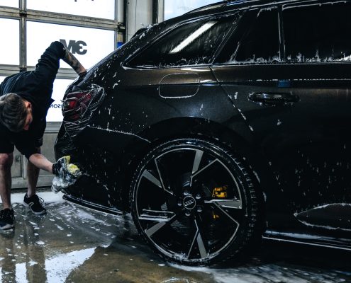 Mytí exteriéru probíhá dvoufázově, aby nedošlo k poškrábání laku. Nejprve bezkontaktně – speciální šetrnou chemií, tlakem vody i aktivním šampónem a poté profesionální mikrovláknovou houbou. Tak docílíme skvělého výsledku aniž bychom napáchali jakékoliv škody. Na závěr vůz vysušíme.